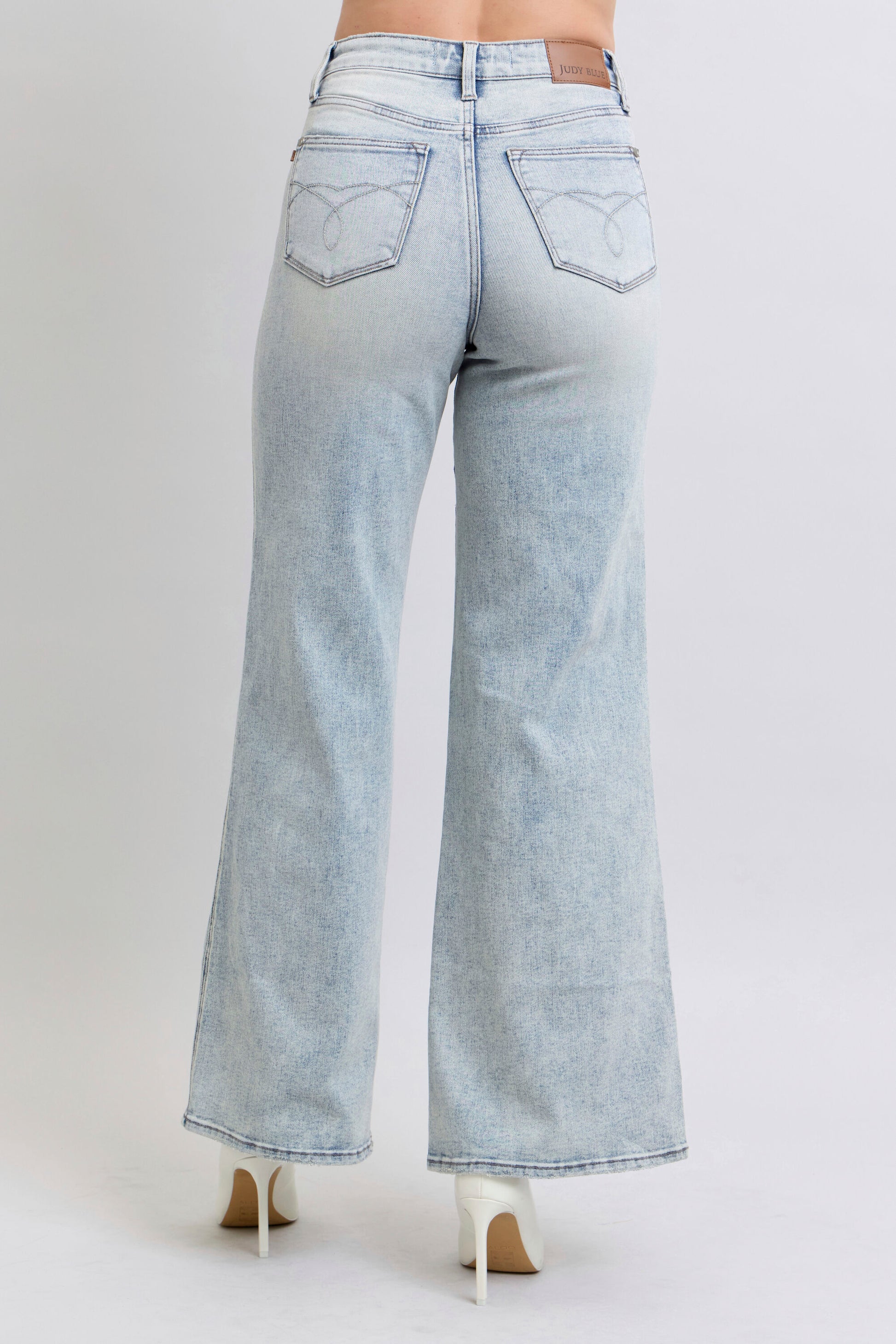 Go a little retro with the Judy Blue retro wide leg jeans.